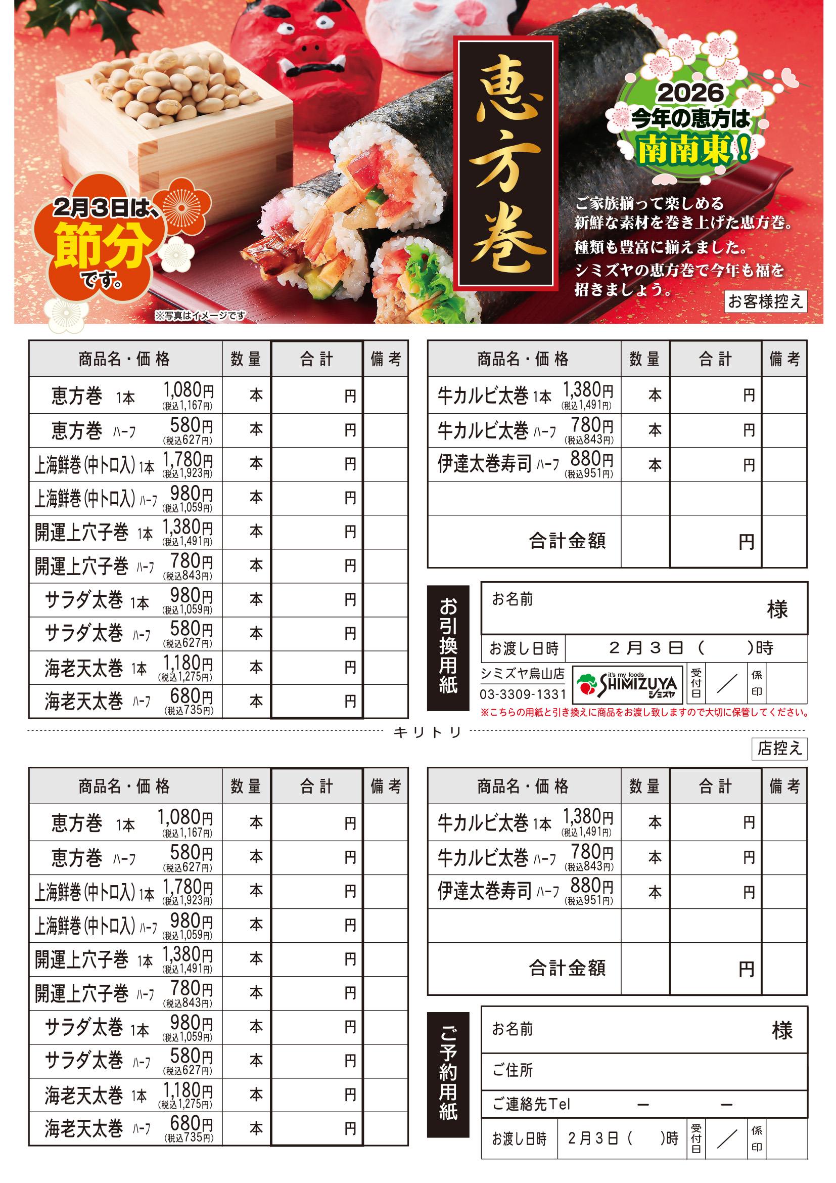 - 今年の節分は2/2。シミズヤの恵方巻で福を招きましょう!
